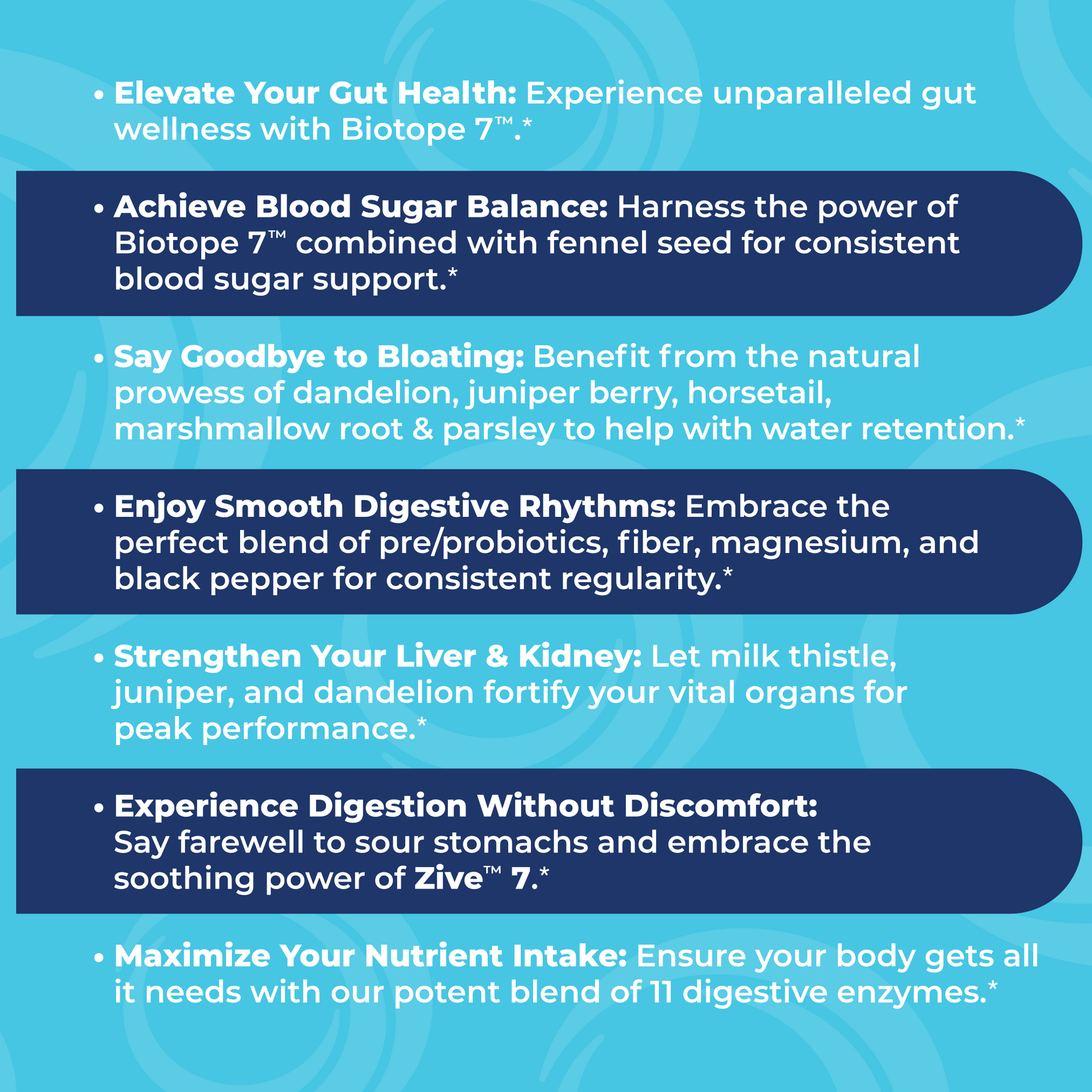 Get ready for a gut so happy, it might start doing the cha-cha! BIOTOPE 7 is here to make sure your digestive system has the time of its life.